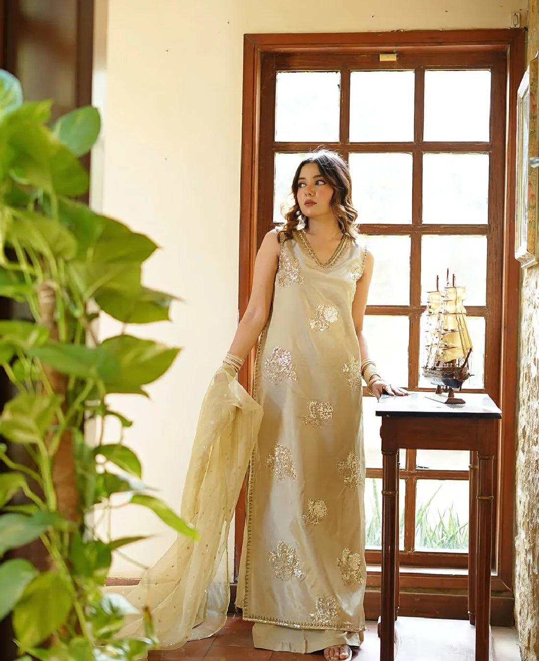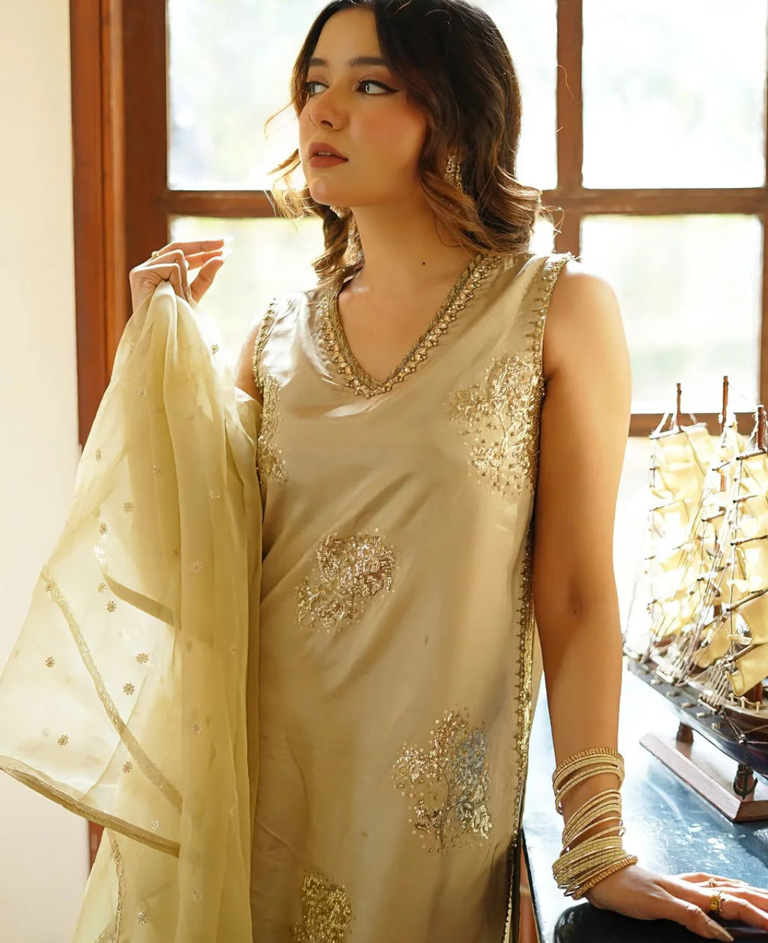 ⦁ 3 Piece -EMBROIDERED WITH Organza dupatta