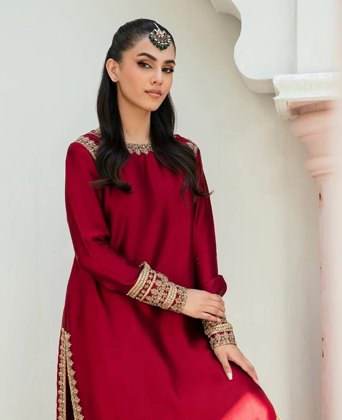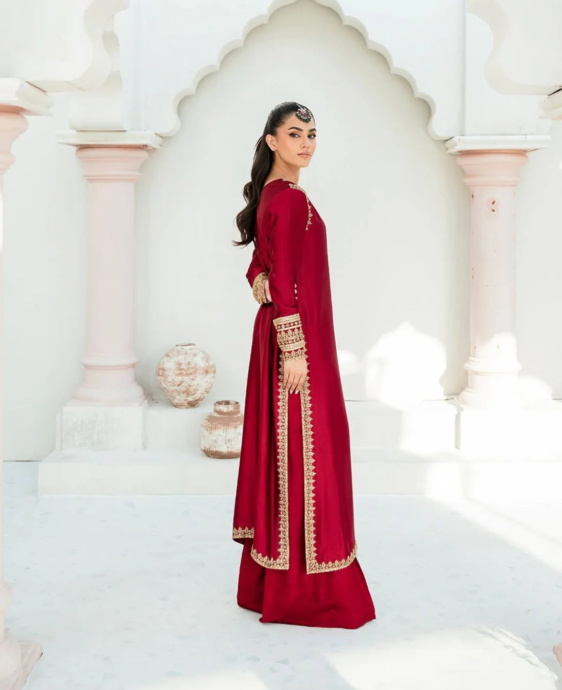 ⦁ 3 Piece - Embroidered shirt with organza duppatta